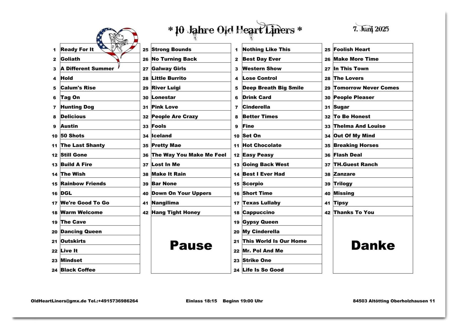 Tanzliste Tanzparty Altötting 07.06.2025